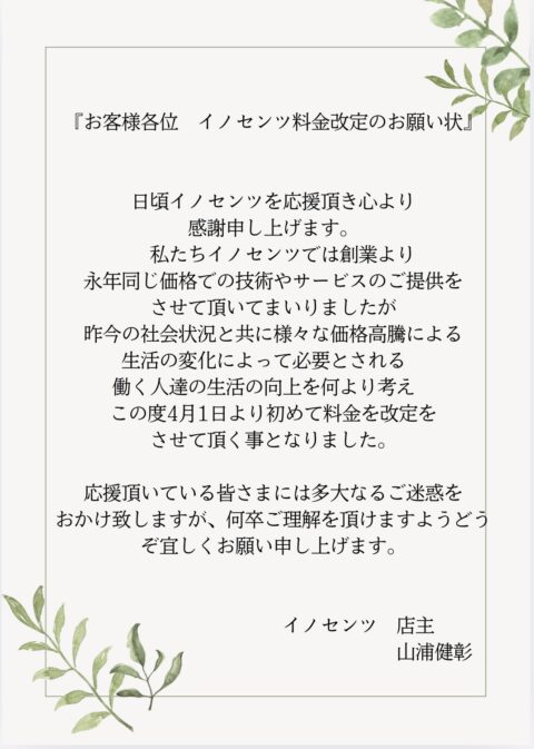 4月以降のご来店の際には最初に必ず料金提示をさせて頂きます。
