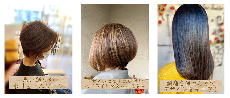 カラーなどの施術した髪のケア、色持ちのケアができる髪質に合わせて選べる
