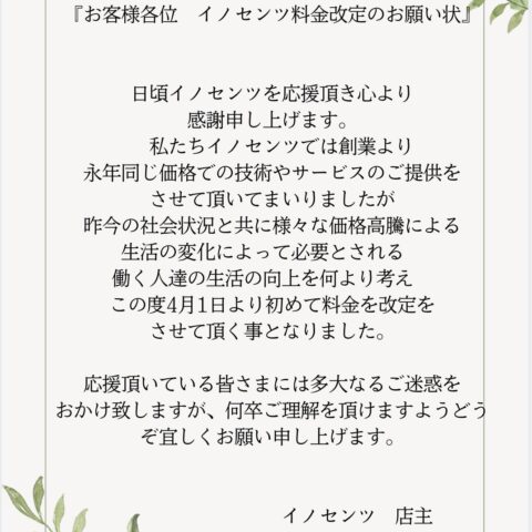イノセンツのセットメニュー、季節のおすすめをご用意致しました。